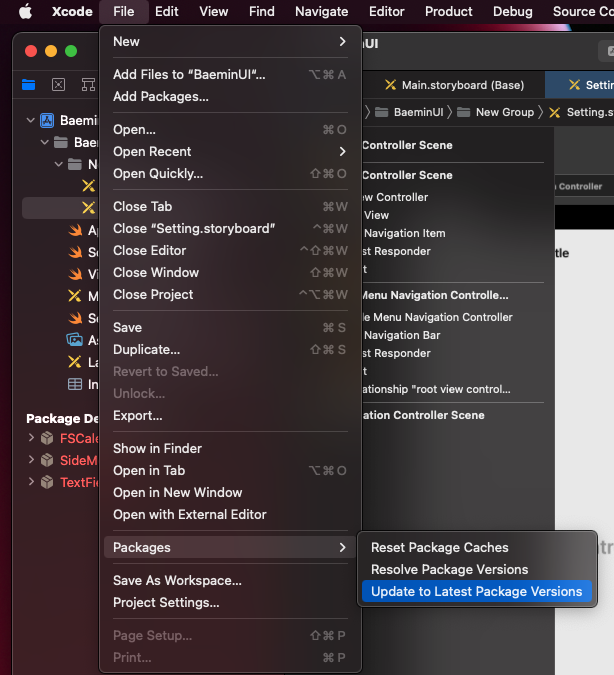 아래 경로로 들어가서 패키지를 최신 버전으로 업데이트 해준다.