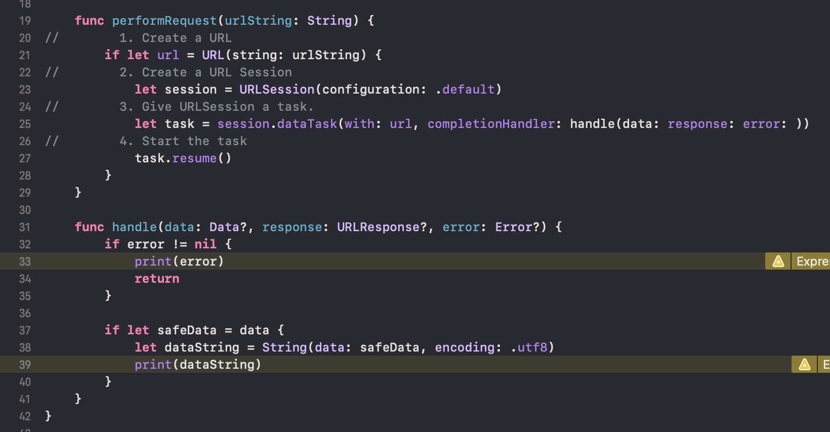 let task = session.dataTask(with: url, completionHandler:(Data?, URLResponse?, Error?) -> Void)