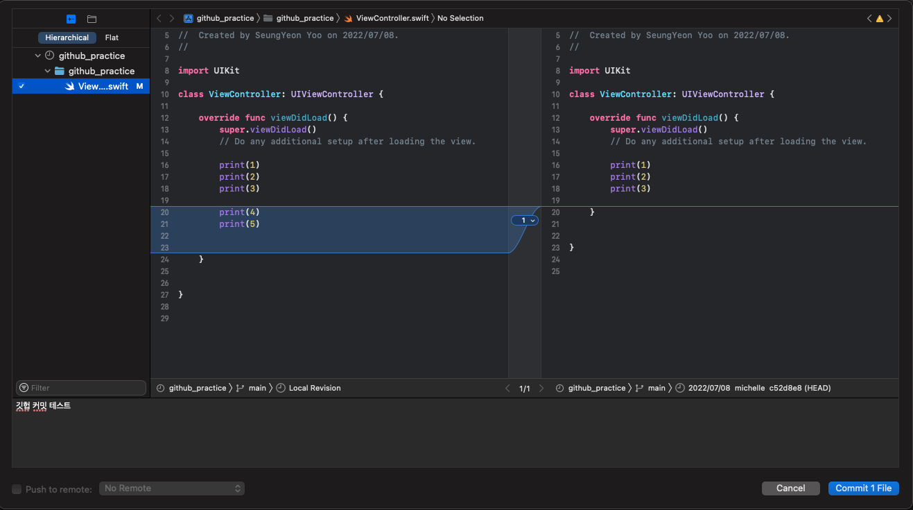 옆에 커밋 지점들을 클릭해보면 무엇이 변화 되었는지 알 수 있다.