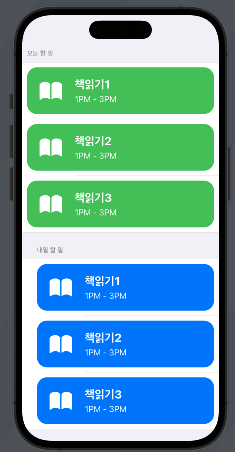 MyCard(icon: "book.fill", title: "책읽기\(itemIndex)", start: "1PM", end: "3PM", bgColor: Color.blue)