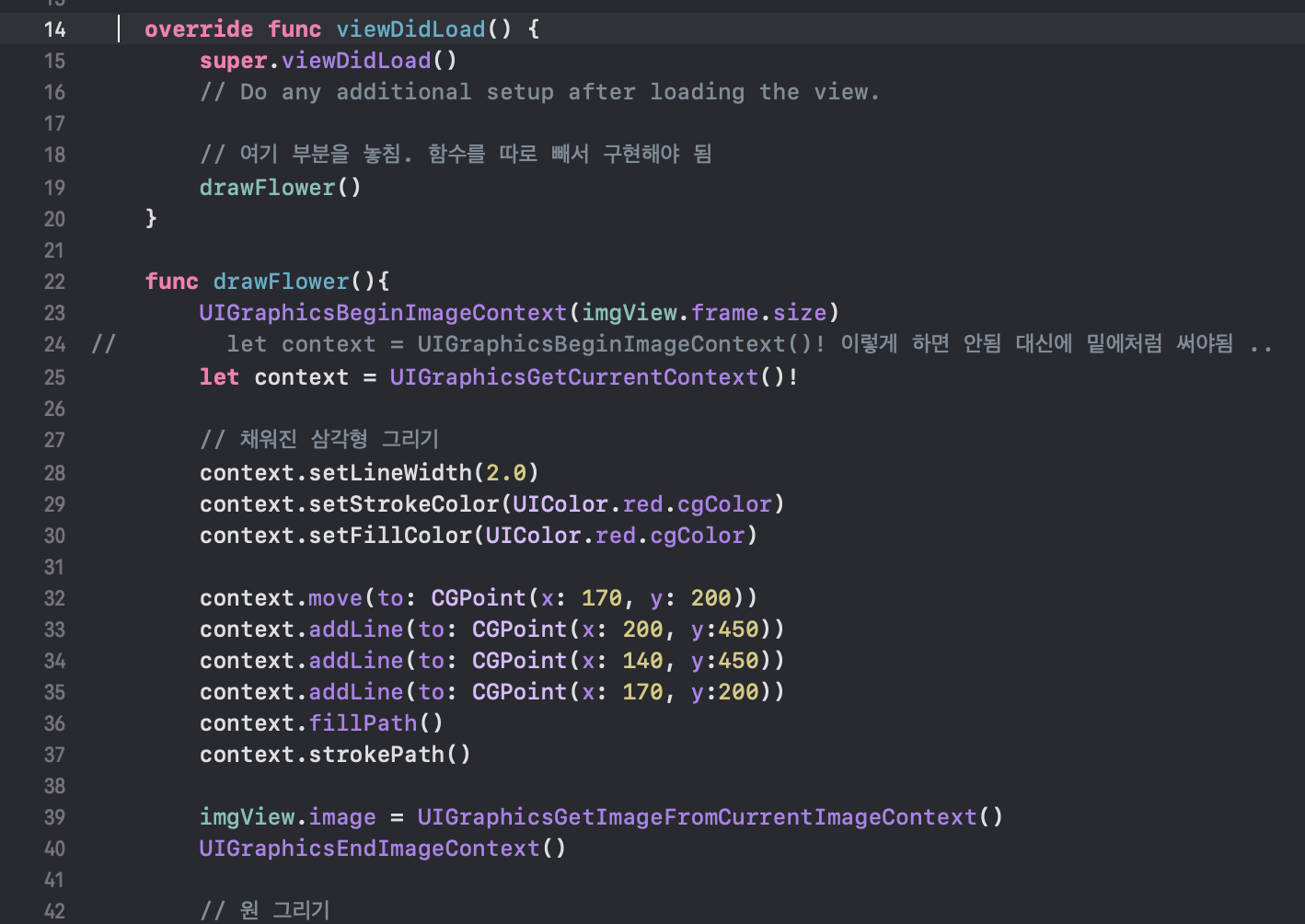 Core graphics이용해서 꽃 그리기 하다가 나온거 (do it 스위프트 책 p.612) : UIGraphicsGetCurrentContext()