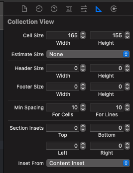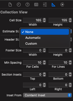 *Estimate Size = None으로 해놓아야 코드에서 컬렉션뷰의 셀 크기, 셀 사이 간격 등 설정하는게 반영됨!