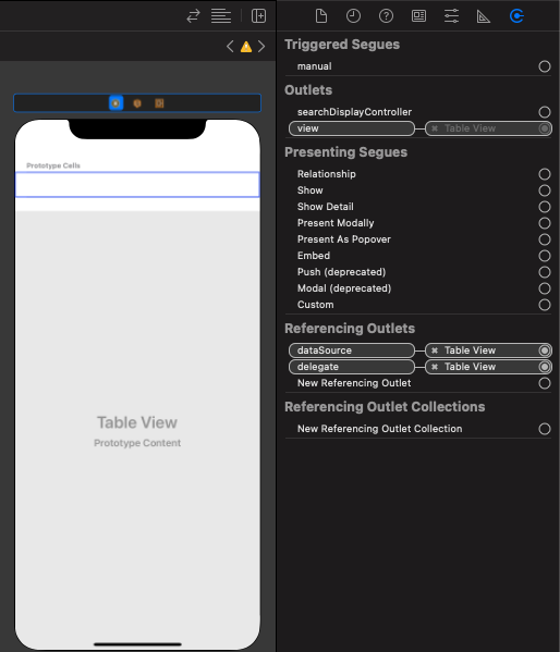 UIViewController 위에 Table view 랑 cell 얹은 경우